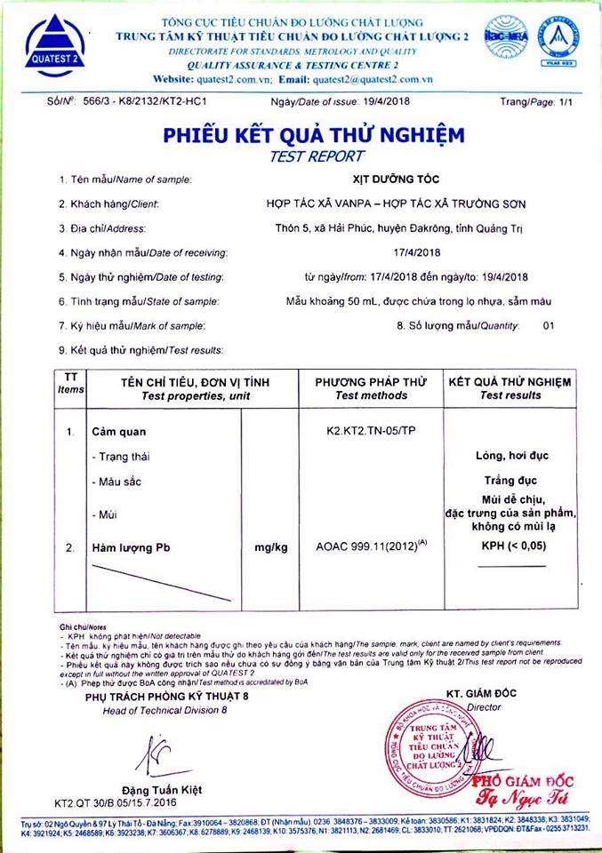 Kiểm định chất lượng xịt dưỡng tóc Mộc Mây